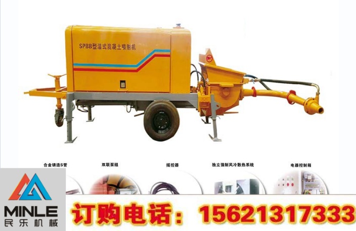 濕噴機是將攪拌好的混凝土通過輸送泵送至噴嘴,且在輸送泵的出口處加以壓縮空氣,讓物料和空氣在管路中得以充分rong合,使得后的物料更加均勻。且在噴嘴處加速凝劑,讓物料能夠快速凝固,回彈率。并且材料的配合易于控制,工作效率較干噴高。